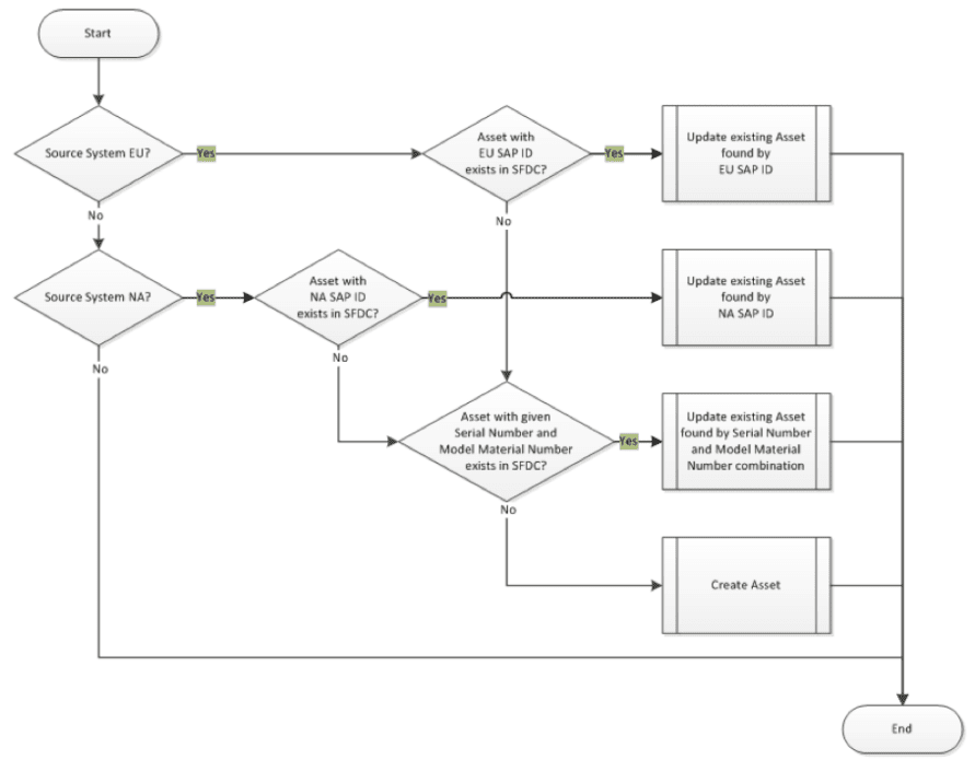 Schauen Sie sich das Beispiel an, das mit dem eingebauten SKYVVA-Workflow einfach gelöst werden kann, um eine Vorbedingungsprüfung durchzuführen, bevor ein Asset geändert wird. Hier können verschiedene Bedingungen definiert werden, die aus einem komplexen Ausdruck mit Formeln bestehen. Eine Kette von regelbasierten Schnittstellenverarbeitungen kann eingerichtet werden und bietet Ihnen eine leistungsfähige Möglichkeit, komplexes Nachrichtenverarbeitungsverhalten als die einfache CRUD-Operation hinzuzufügen. Sie können jede komplexe Regel definieren, die zuerst validiert werden muss, bevor Sie das sObject ändern.